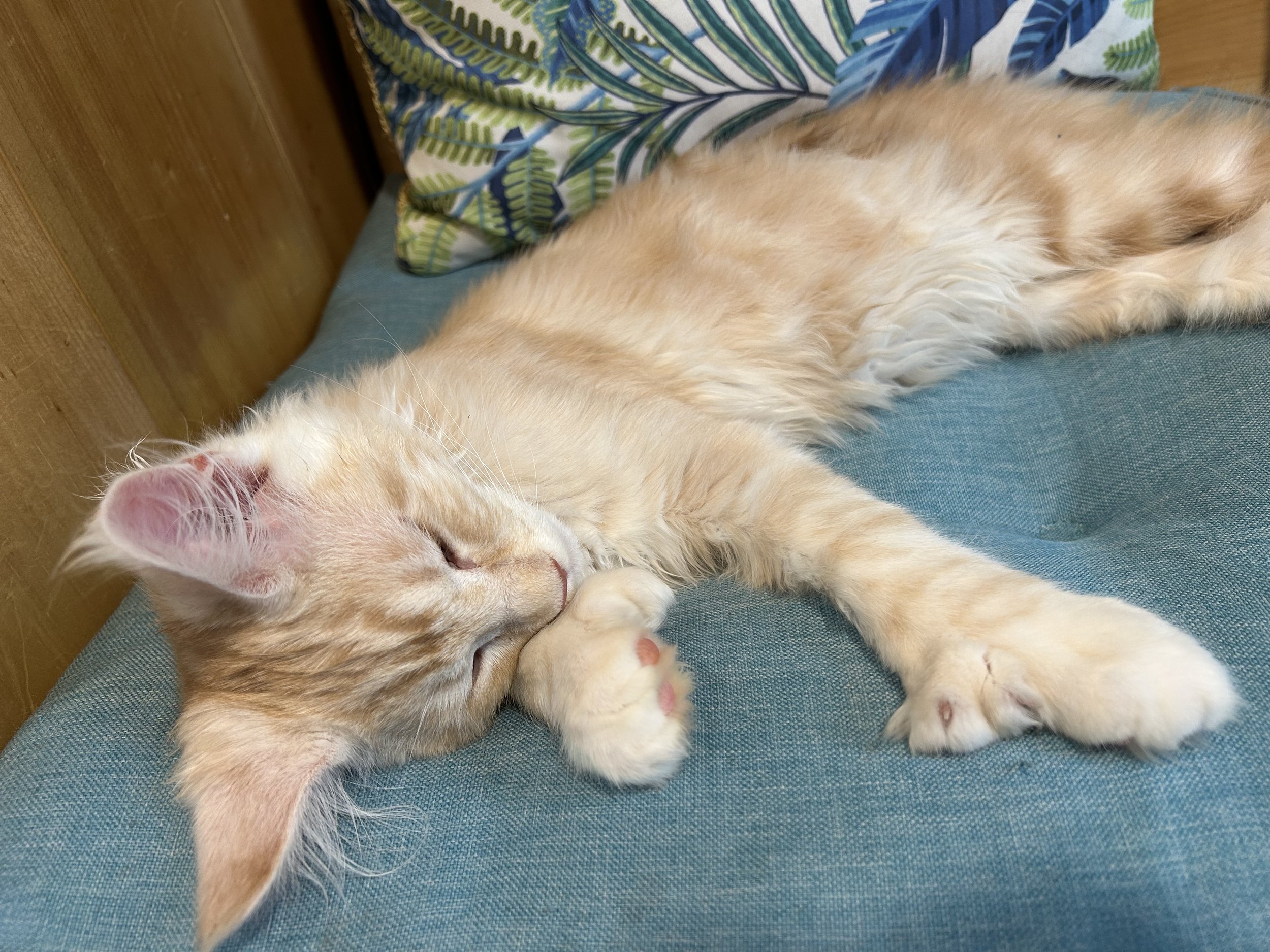 Our young male Gingie, a polydactyl red smoke tabby- look for him in 2027!