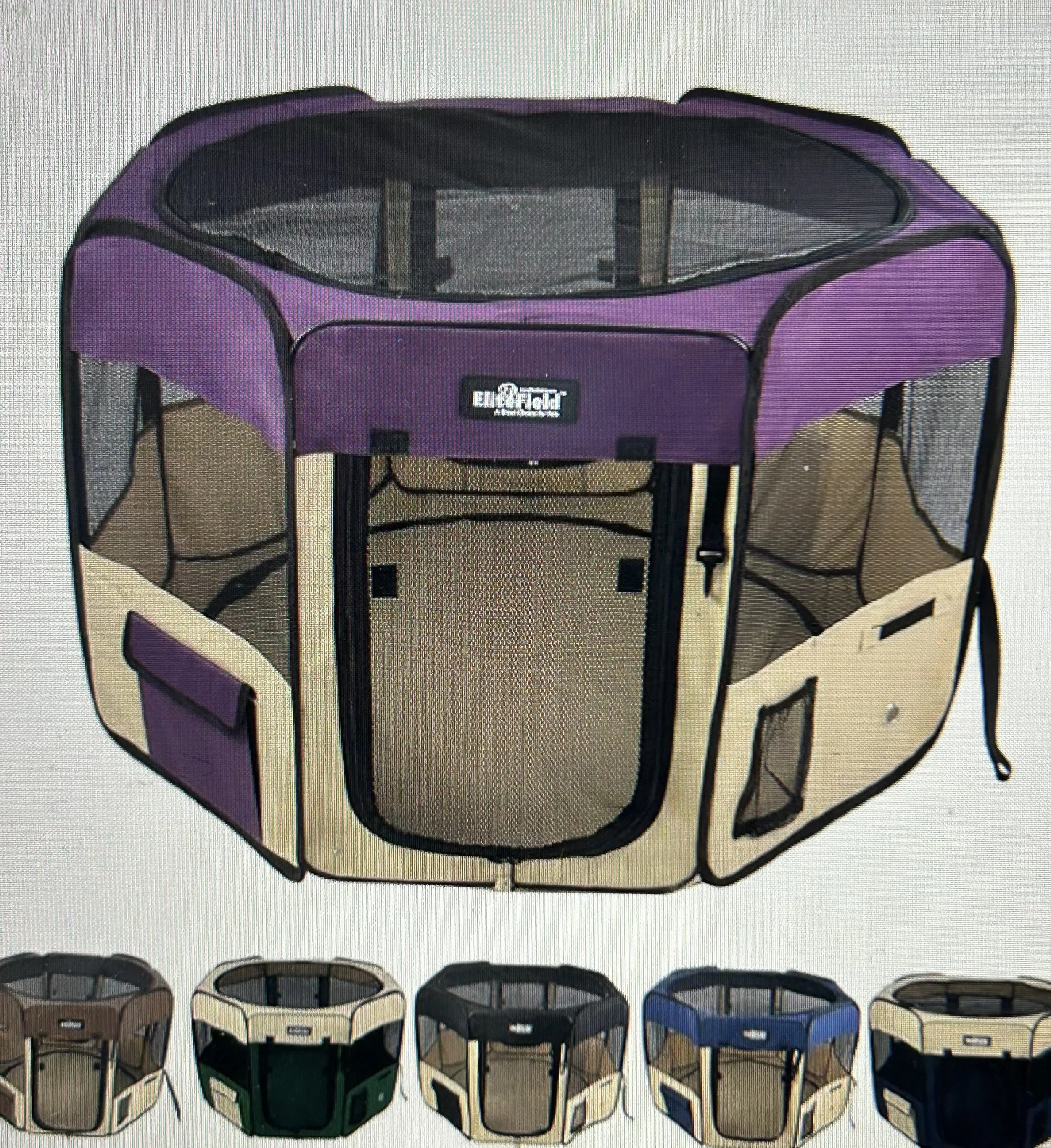 Elite Field Round Pen- add small litter box, food, water and cozy bed and it’s a kitten safe space for nights and when you’re out